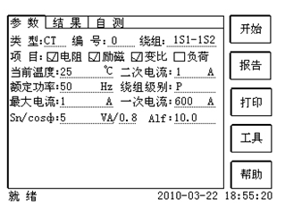 2.6,測試電流:一般可設(shè)為額定二次電流值,對于TPY級CT,一般可設(shè)為2倍的額定二次電流值。對于P級CT,假設(shè)其為5P40,額定二次電流為1A,那么測試電流應(yīng)設(shè)5%*40*1A=2A;假設(shè)其為10P15,額定二次電流為5A,那么測試電流應(yīng)設(shè)10%*15*5A=7.5A。