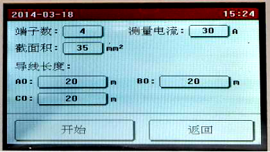 點擊需要修改的參數(shù)設(shè)置框設(shè)置參數(shù),全部設(shè)置完成后點擊“開始”按鈕,儀器即按照設(shè)置的參數(shù)開始自動測量各端子的電阻值,并計算電阻率,自動判斷接地線是否合格。