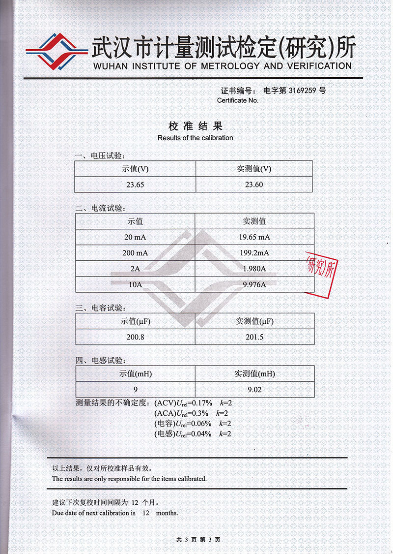 | 分辨率 | 0~1.999μF | ±1.0%rdg | |