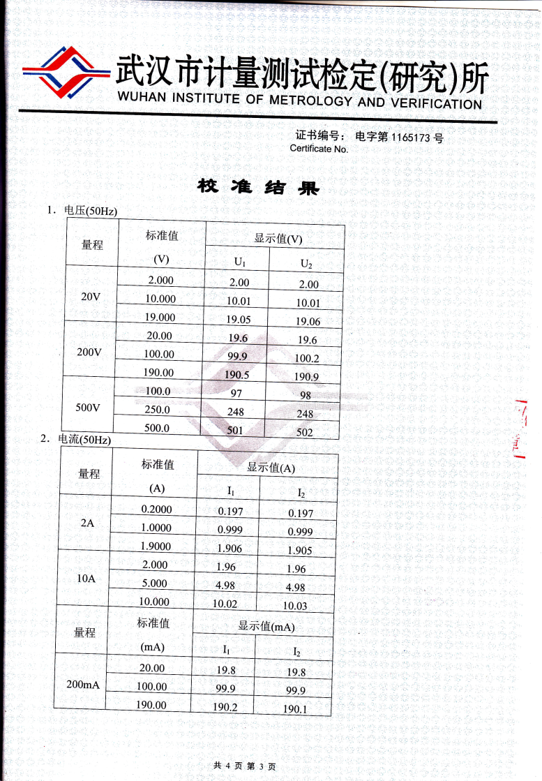 注:相位測(cè)量在1.5mA-10mA,5V-10V時(shí),相位誤差為±3°。 額定工作條件下,各被測(cè)量的額定工作誤差極限不超過相應(yīng)基本誤差極限的兩倍。