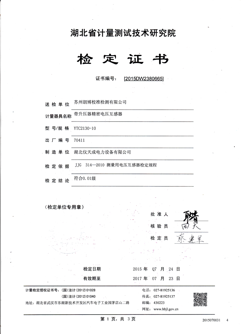 0.05級(jí) 即在額定負(fù)荷的情況下: 當(dāng)電壓為80%Un至120% Un的范圍內(nèi), 比差不大于0.05%,角差不大于2', 當(dāng)電壓為50% Un 時(shí),比差不大 于0.075%,角差不大于3', 當(dāng)電壓為20% Un時(shí),比差不大于0.1%, 角差不大于6'(實(shí)際誤差不大于誤差限值的60-70%)。 |