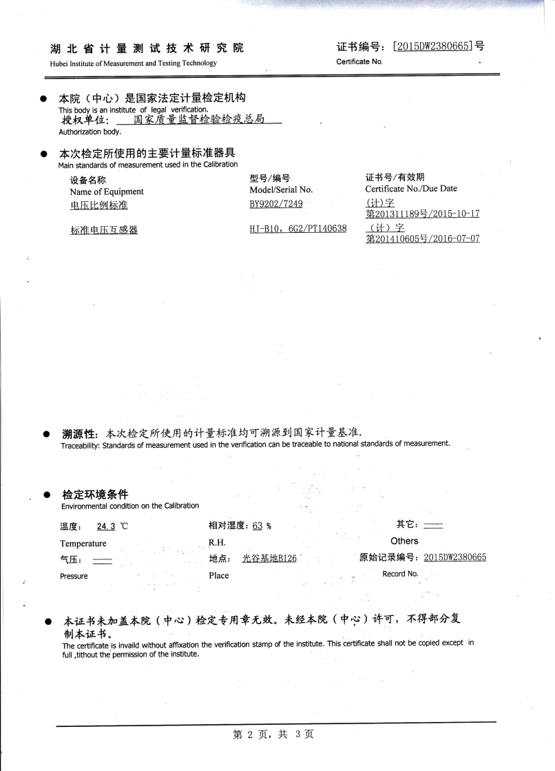 | 試驗(yàn)電壓 | 一次繞組感壓耐壓為1.2 Un,1分鐘,二次繞組對(duì)地,工頻耐壓2KV,1分鐘 |