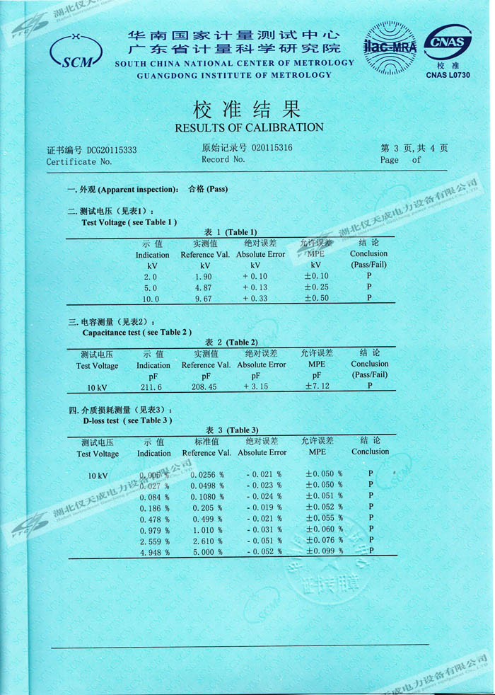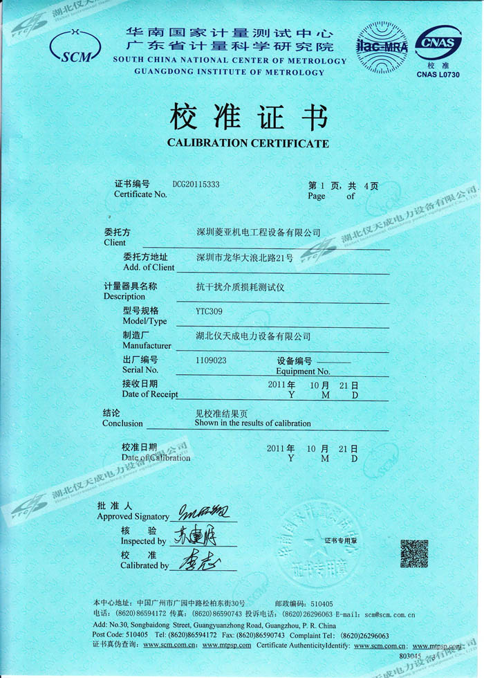 轉(zhuǎn)載:"YTC309抗干擾介質(zhì)損耗測(cè)試儀的資質(zhì)證書" 請(qǐng)注明來源于儀天成電力。 更多技術(shù)問題請(qǐng)致電儀天成電力客戶服務(wù):027-87876585,技術(shù)部專線:027-87876585,在線客服:719388481