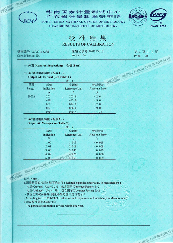 轉(zhuǎn)載:"YTCDG-2000A大電流發(fā)生器的資質(zhì)證書(shū)" 請(qǐng)注明來(lái)源于儀天成電力。 更多技術(shù)問(wèn)題請(qǐng)致電儀天成電力客戶(hù)服務(wù):027-87876585,技術(shù)部專(zhuān)線(xiàn):027-87876585,在線(xiàn)客服:719388481