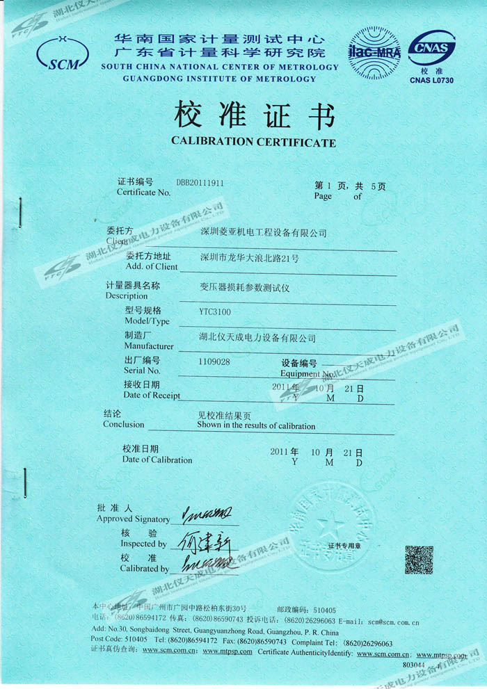 轉(zhuǎn)載:"YTC3100變壓器損耗參數(shù)測試儀的資質(zhì)證書" 請注明來源于儀天成電力。 更多技術(shù)問題請致電儀天成電力客戶服務(wù):027-87876585,技術(shù)部專線:027-87876585,在線客服:719388481